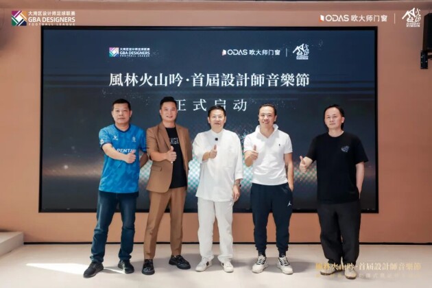 在启动仪式上,欧大师门窗董事长欧阳天生先生、广州共生形态设计创始人彭征先生、博思道设计创始人蔡祝源先生、天盟国际设计合伙人骆图渊先生、广州市鸿畅环保设备有限公司项目总监陈国钦先生共同上台,开启这场设计与跨界融合的精彩之旅,标志着首届设计师音乐节正式启航!