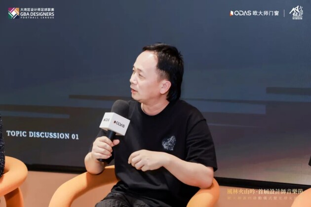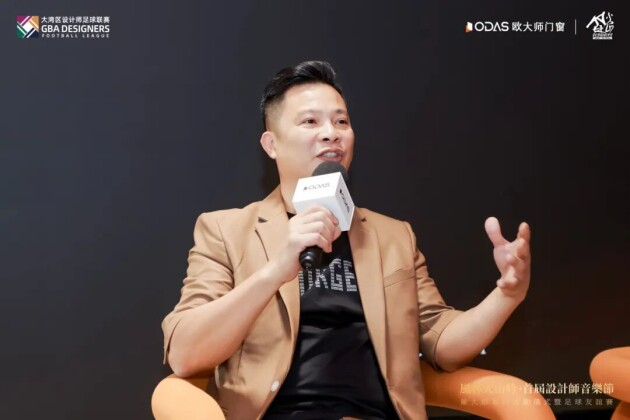大湾区设计师足球联赛组委会会长、首届设计师音乐节发起人、广州共生形态设计创始人彭征先生作为首届设计师音乐节代表也在现场带来精彩分享。他从设计与音乐的紧密联系出发,以独特视角深入剖析首届设计师音乐节的诸多亮点与特色。
