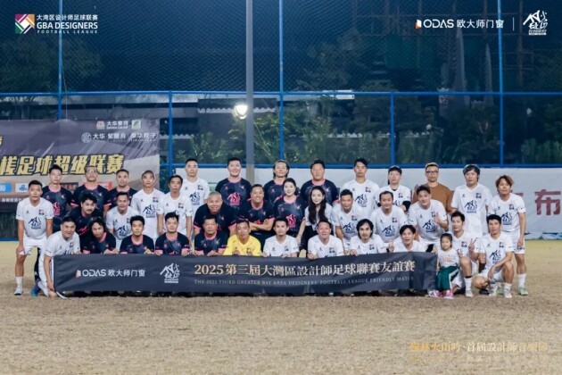 夜幕下的球场灯火如昼,来自大湾区设计行业的精英们暂时放下绘图笔与电脑屏幕,化身绿茵场上的追梦者。由佛山博思道、顺德室协、湛设、斯帝罗兰组成的“西江兄弟队”和广州共生、地产老伙计、深圳方钜、东莞马可波罗组成的“珠江明星队”上演一场设计师明星友谊赛,以热血对抗点燃了全场热情。