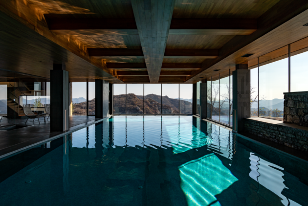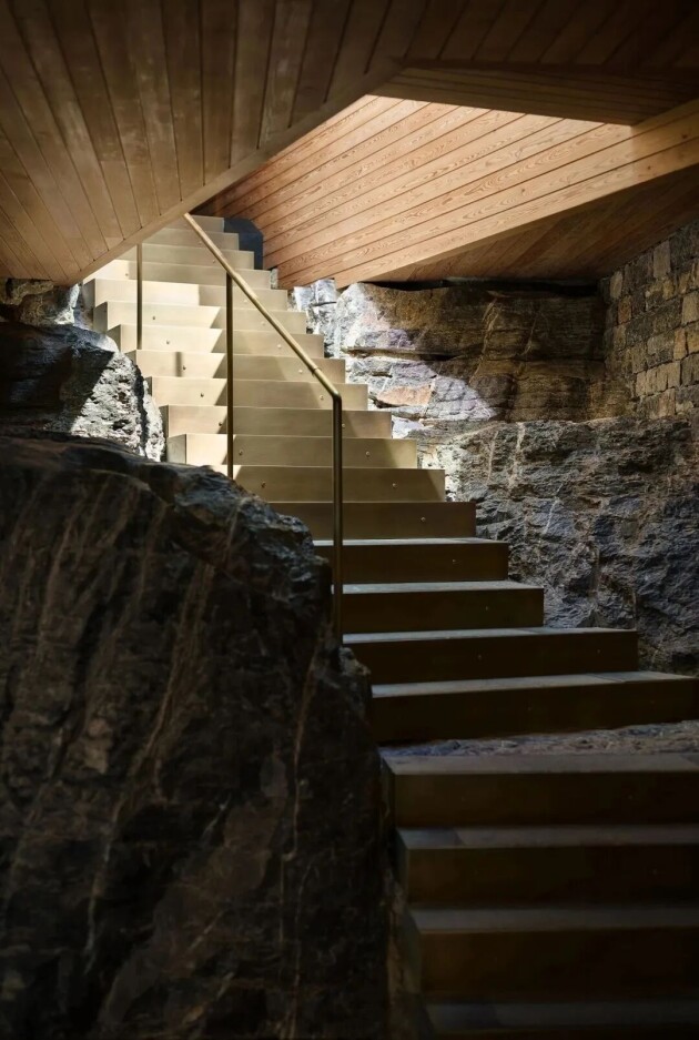 援引“重剑无锋,大巧不工”与“独孤九剑”为喻,诠释了设计的双重境界:一方面以粗犷石材、原生肌理将建筑嵌入自然,追求“去装饰化”的本真表达;另一方面则以“无招胜有招”的智慧,赋予空间因势而变的灵动,让人在云海、山风与光影中自主感知自然。