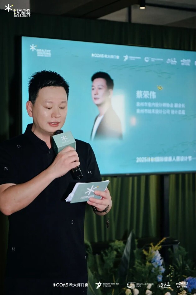 泉州市室内设计师协会代表、泉州市结禾设计有限公司设计总监蔡荣伟先生首先在活动伊始发表致辞。他首先对主办方广州设计周与联合首席健康合作伙伴欧大师门窗的到来表示欢迎与感谢,并阐述了iHH设计节从重庆“品荷·赏境”到泉州“觅寻·闽境”的脉络延续,指出此次活动旨在从千年海丝文化与闽南风土中,探寻健康人居与在地文明的共生之道。