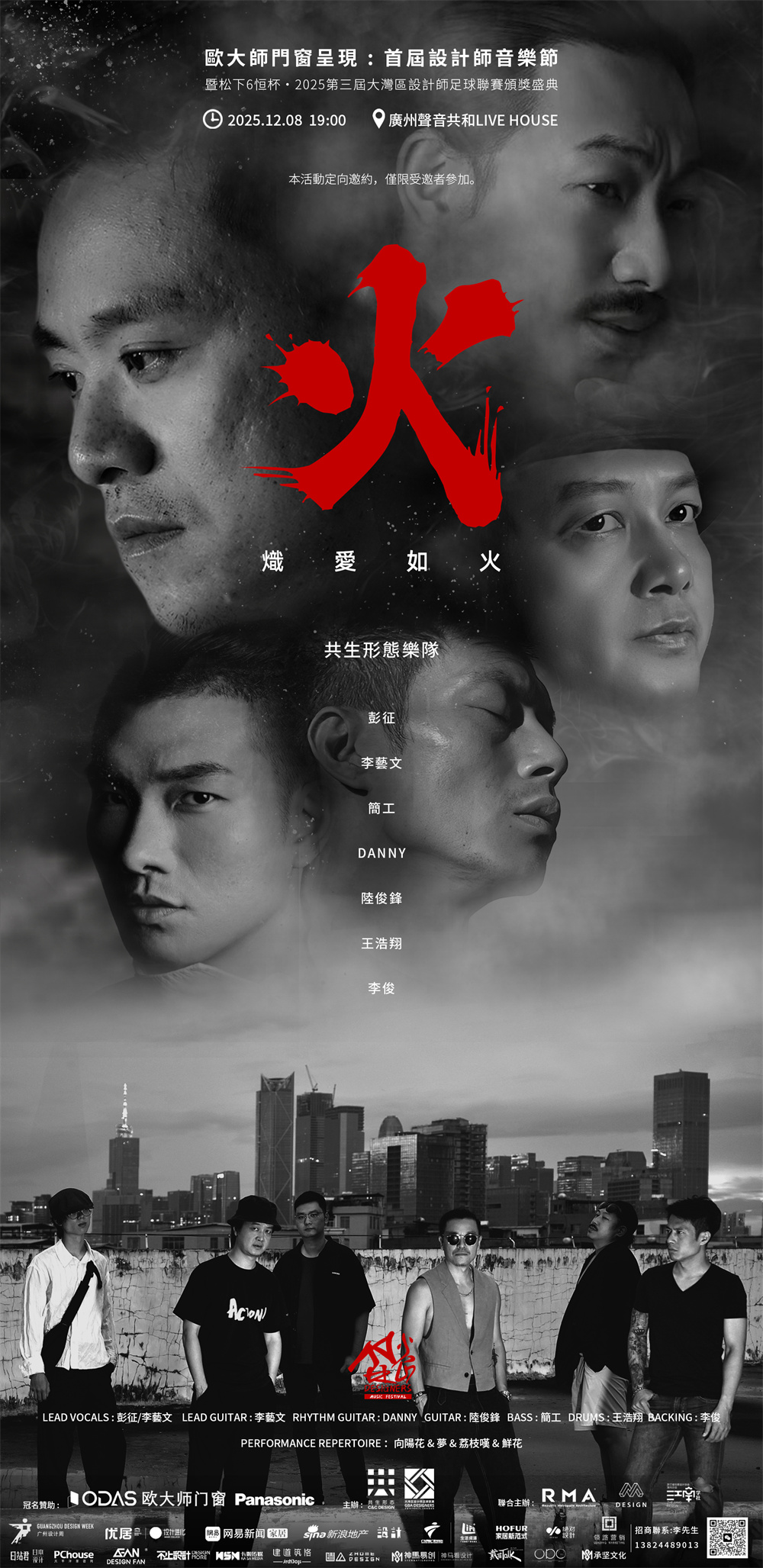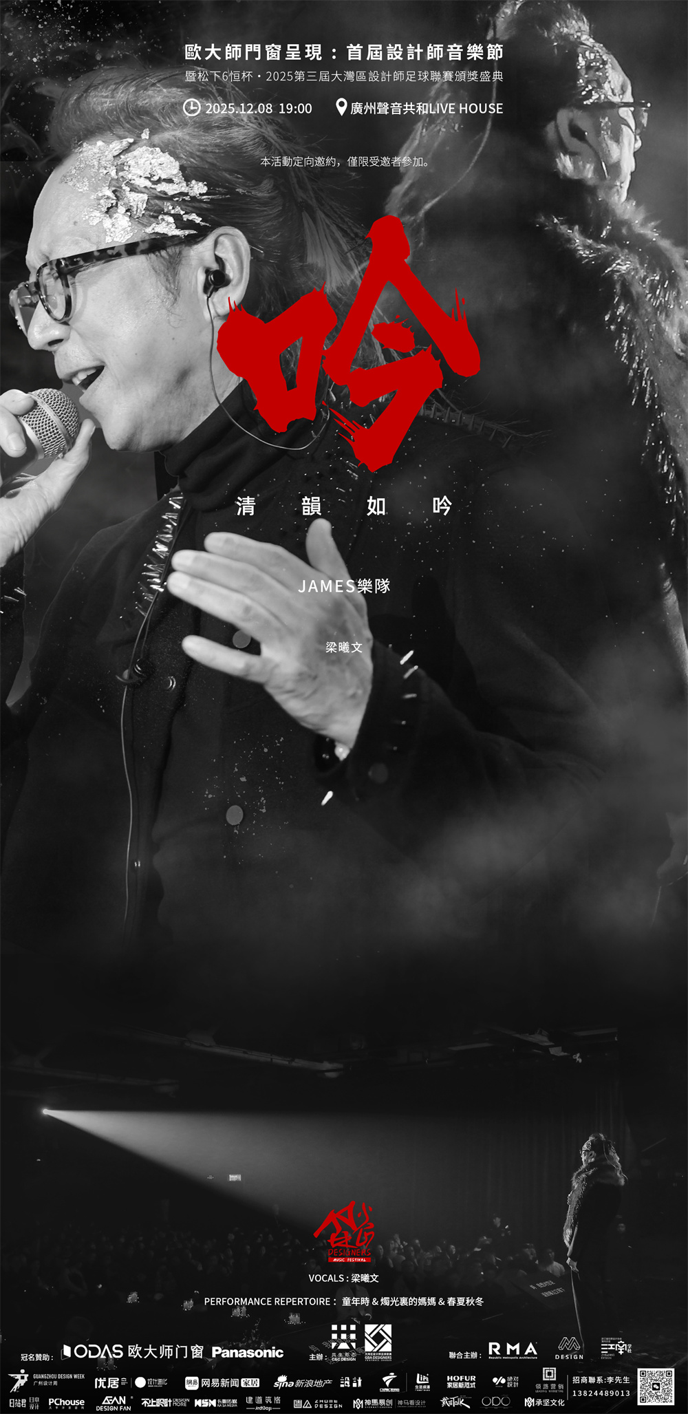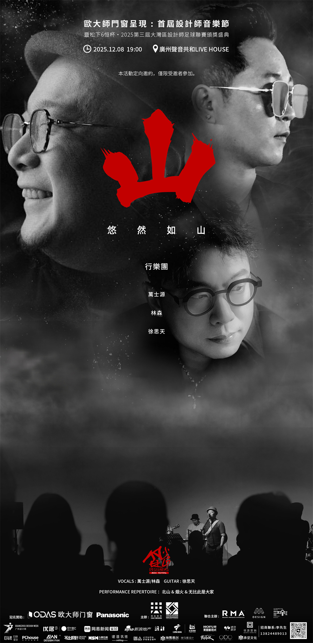 设计师音乐节是中国首个设计师创办的音乐文化IP。首届设计师音乐节由知名设计师彭征、黄永才、梁曦文、陈德坚、林森、万士源先生等联合发起、欧大师门窗作为总冠名的设计师音乐盛典,于2025年12月8日在广州声音共和Live House举办。