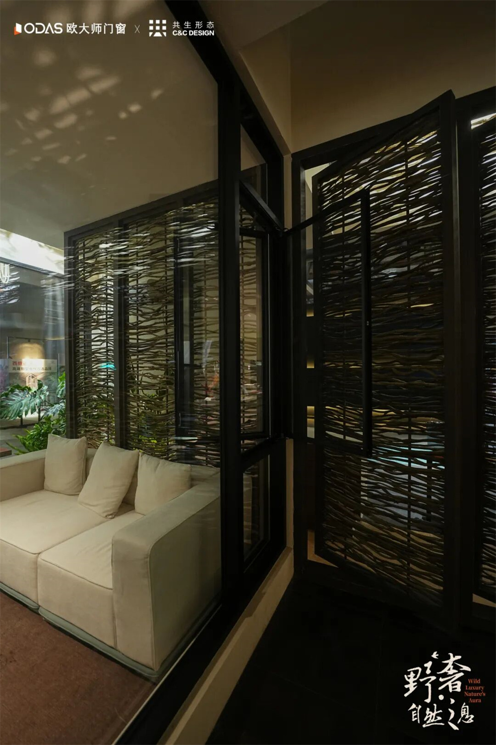 巧妙结合中国兵法智慧与现代设计哲学,以“风之息”“林之㮩”“火之熄”“山之憩”四大空间,构建可游、可憩、可感的微缩世界。设计理念充分彰显欧大师门窗对野奢美学的独到见解,以及在设计领域的深厚积累与创新活力。