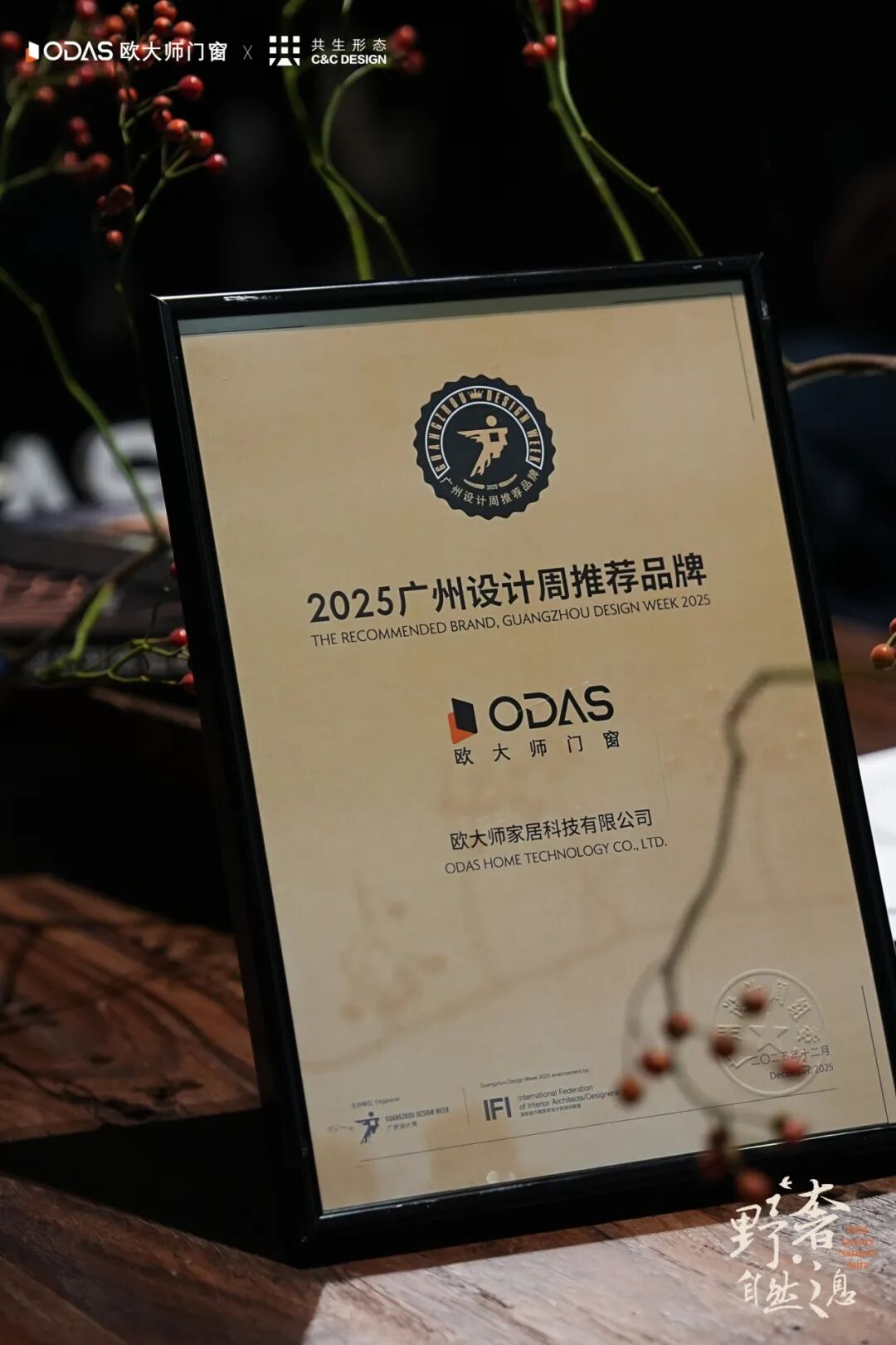 开展首日,欧大师门窗荣获“2025广州设计周推荐品牌”。此荣誉由广州设计周主办方亲自颁发,是对欧大师门窗在设计领域卓越表现的高度认可与肯定。