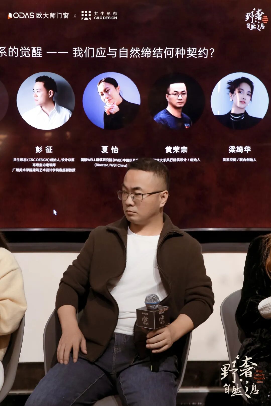 在沙龙分享现场,欧大师门窗2025广州设计周【野奢·自然之息】展位主笔设计师、共生形态创始人彭征先生,以《自然之道》为主题展开深度分享。