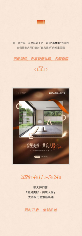 欧大师门窗「窗见美好·共筑人居」大师级门窗焕新礼遇